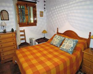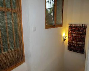 Entering the house through the stable door brings you into a spacious hallway with stairs to the upper floors and some useful storage cupboards beneath. There is a window to the front fitted with traditional wrought iron security bars. The ceilings throughout the house are of a traditional exposed beam and slate construction. A corridor leads to a bathroom which is fully tiled and fitted with a shower enclosure, basin, toilet and bidet. There is an extractor fan fitted and also a high window onto the hallway for natural light and ventilation as this is an internal ground floor room. The room next to this is currently used as a store room but could be used as an additional bedroom. There is a large custom built triple cupboard and plenty of space for furniture.
