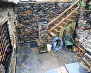 The rear terraces are of a traditional stone wall, slate floor and pillar and beam balustrade construction. A small lower terrace has stairs leading to an upper level. Under the staircase is a useful wood store. The upper level has a pear tree and various shrubs and climbing plants including a grapevine. There is space here for an outdoor dining set.