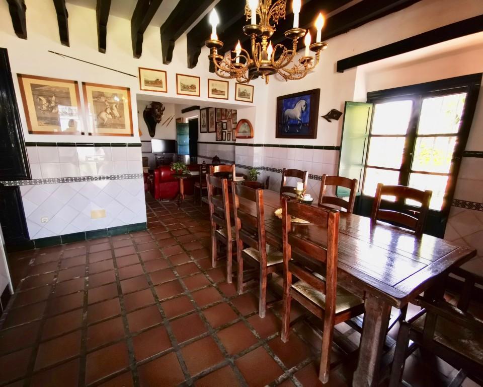 18th century Sevillian Hacienda, currently used as a country house and for events. Just 10 minutes from Seville and the airport, the property has a large main house, two apartments, land for equestrian use, equestrian facilities, and a number of outbuildings.