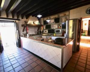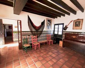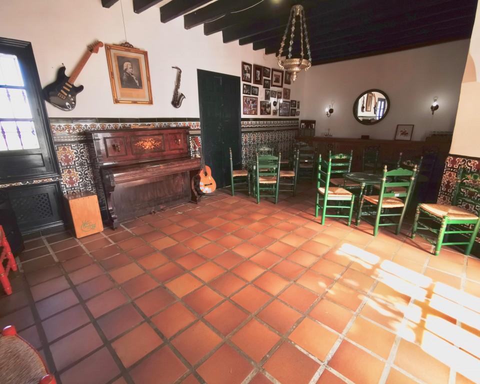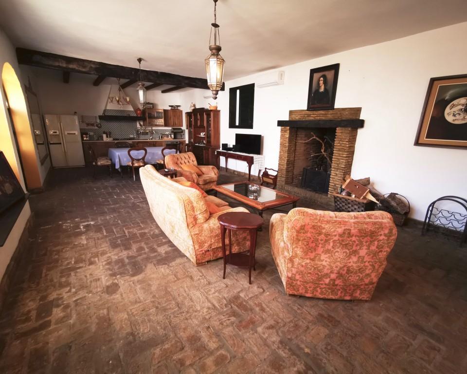 From here you can access the west wing, with two living rooms, two bedrooms and a bathroom, a kitchen with dining room and fireplace. From here you go directly to a beautiful garden. On the upper floor there are four bedrooms with bathrooms. There is a further large living room with a fireplace, four bedrooms and two bathrooms. In front of the main entrance of the Hacienda, we find a large room, that currently is not being used.