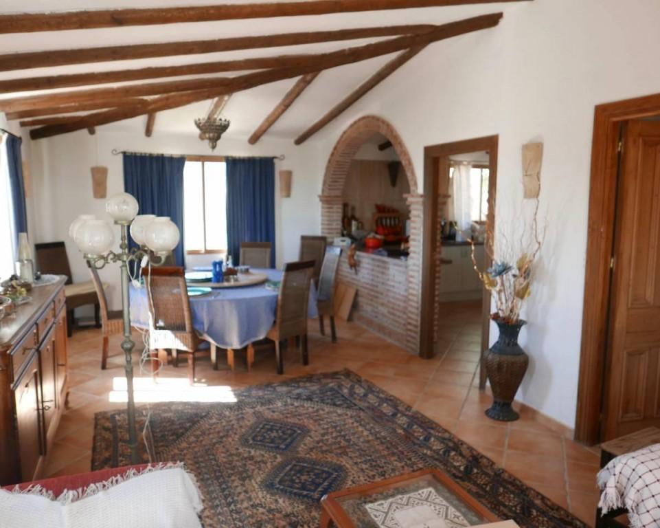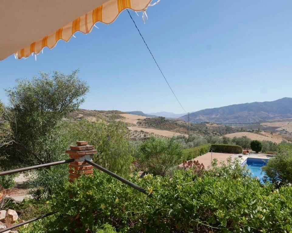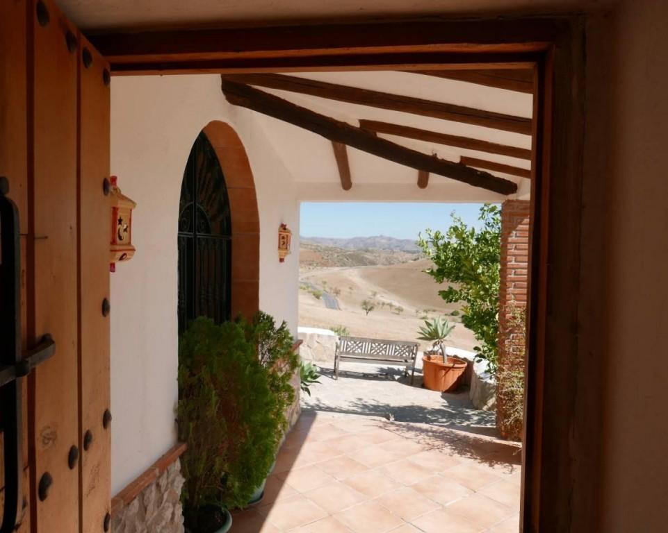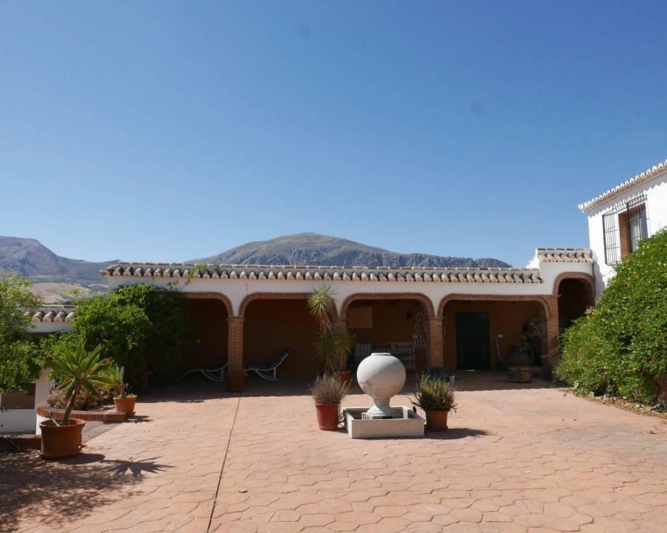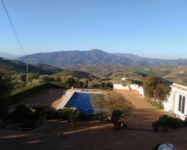 A breathtaking property dating back to the 19th century when it was an inn ( stopping place ) for drovers taking cattle to the markets in Antequera. It has been lovingly reformed and extended to create a stylish and functional home full of space and light lots of original features and vaulted beamed ceilings. -Entrance hall with wood burner, staircase, cloakroom, storage and toilet -Main lounge with wood burner, patio doors to covered terrace, all round windows -2nd sitting room / snug / study also with wood burned and door through to the downstairs en suite bedroom creating a full suite if desired -Office leading through to the kitchen -Large quality kitchen with central island designed to cater for large numbers featuring Italian marble surfaces, american fridge freezer, smeg range with 6 rings, hotplate and double oven, additional oven, microwave coffee machine and dishwasher. -Off the kitchen are a larder, wine cellar and utility room with back door which houses also the water heaters both electric and gas fed a 10,000 ltr gas storage tank outside. -Adjoining kitchen with decorative archway and breakfast bar is a spacious dining room with sitting area, patio doors to a covered terrace and wonderful views to the pool and mountains. -Upstairs is a large landing/living room and 3 big double bedrooms all with private bathrooms. -All doors are solid wood and window are double and triple glazed and the window bars ( rejas ) can be opened and folded back. -Ample covered terraces to enjoy the views so always somewhere shady or sunny -Covered BBQ area by the pool with plenty space for dining or lounging. -Gym or additional bedroom with double glass doors onto pool terrace -Large 9m by 5m pool with large terrace, fabulous views, shower and fountain -9 acres productive olive grove, cared for by a neighbor in exchange for the produce. -U shaped gravel driveway with landscaped garden. -Stunning panoramic views in every direction and from all the windows -Excellent access off a quiet tarmac road -Stable block with 2 loose boxes, feed and hay storage and fenced paddock -2km from nearest amenities in Valle de Abdalajis including 24 health center -20 min drive from bigger towns of Alora and Antequerra and from El Chorro -1 hour drive from Malaga city and airport.