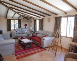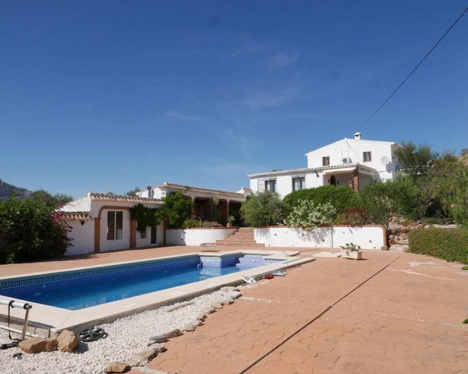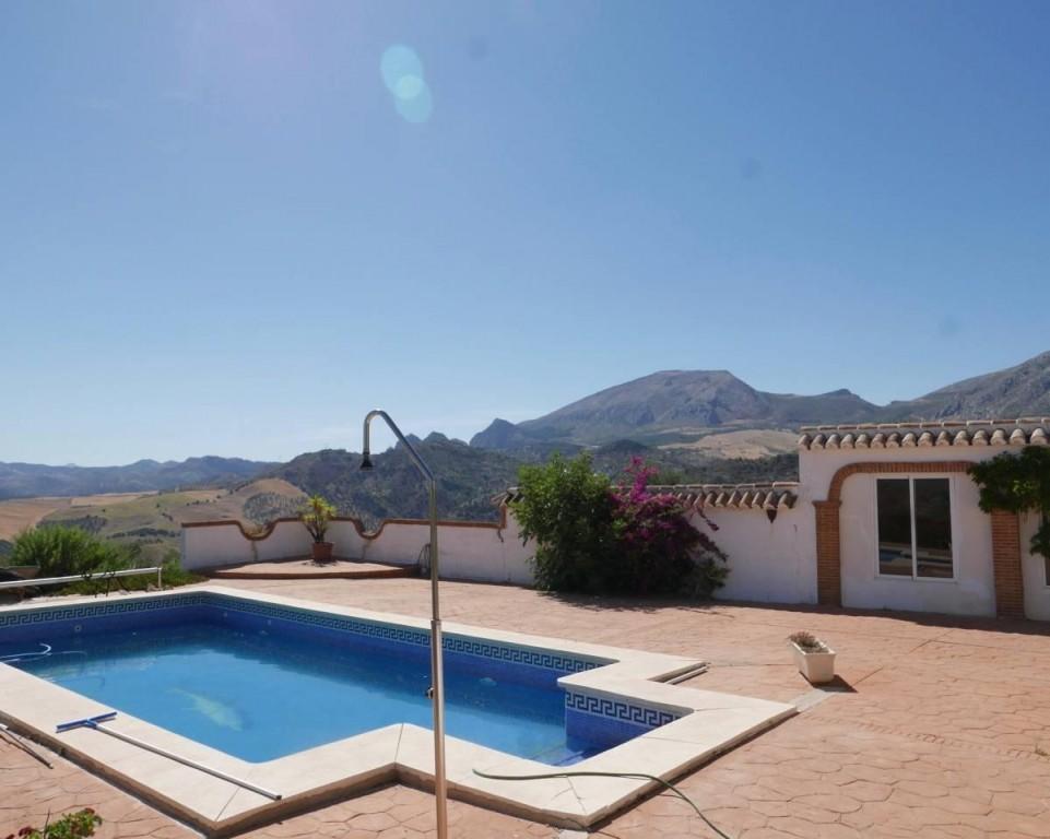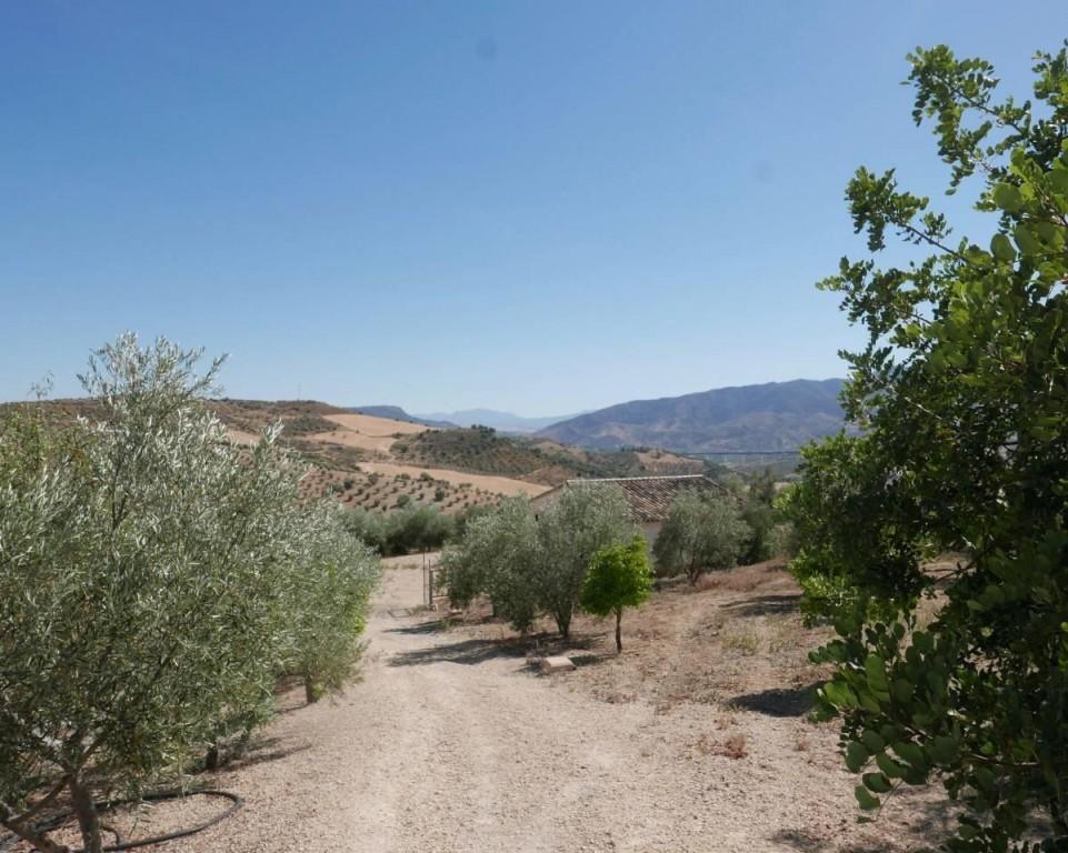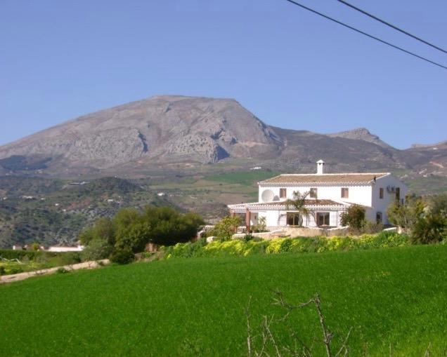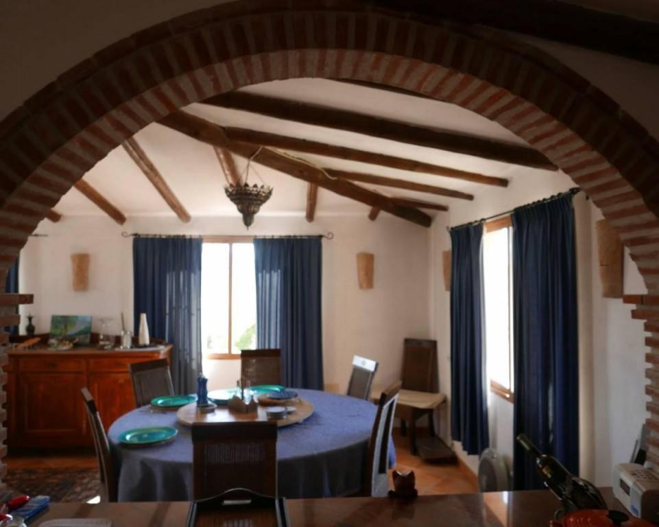A breathtaking property dating back to the 19th century when it was an inn ( stopping place ) for drovers taking cattle to the markets in Antequera. It has been lovingly reformed and extended to create a stylish and functional home full of space and light lots of original features and vaulted beamed ceilings. -Entrance hall with wood burner, staircase, cloakroom, storage and toilet -Main lounge with wood burner, patio doors to covered terrace, all round windows -2nd sitting room / snug / study also with wood burned and door through to the downstairs en suite bedroom creating a full suite if desired -Office leading through to the kitchen -Large quality kitchen with central island designed to cater for large numbers featuring Italian marble surfaces, american fridge freezer, smeg range with 6 rings, hotplate and double oven, additional oven, microwave coffee machine and dishwasher. -Off the kitchen are a larder, wine cellar and utility room with back door which houses also the water heaters both electric and gas fed a 10,000 ltr gas storage tank outside. -Adjoining kitchen with decorative archway and breakfast bar is a spacious dining room with sitting area, patio doors to a covered terrace and wonderful views to the pool and mountains. -Upstairs is a large landing/living room and 3 big double bedrooms all with private bathrooms. -All doors are solid wood and window are double and triple glazed and the window bars ( rejas ) can be opened and folded back. -Ample covered terraces to enjoy the views so always somewhere shady or sunny -Covered BBQ area by the pool with plenty space for dining or lounging. -Gym or additional bedroom with double glass doors onto pool terrace -Large 9m by 5m pool with large terrace, fabulous views, shower and fountain -9 acres productive olive grove, cared for by a neighbor in exchange for the produce. -U shaped gravel driveway with landscaped garden. -Stunning panoramic views in every direction and from all the windows -Excellent access off a quiet tarmac road -Stable block with 2 loose boxes, feed and hay storage and fenced paddock -2km from nearest amenities in Valle de Abdalajis including 24 health center -20 min drive from bigger towns of Alora and Antequerra and from El Chorro -1 hour drive from Malaga city and airport.