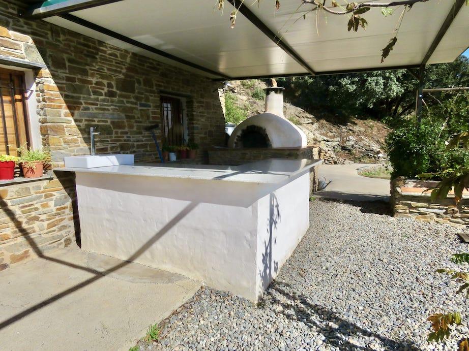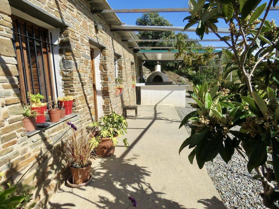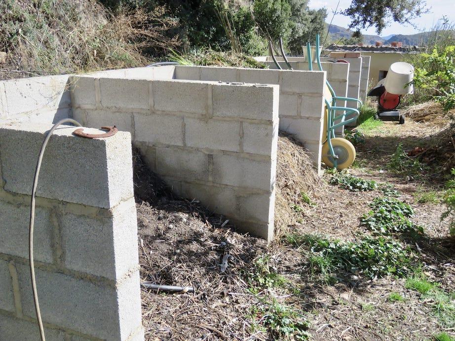 Situated at a lower level and at some distance from the yurt is the garage building. This is a 50 m2 stone-built structure which consists of two parts: a garage and a library/kitchen. The whole building is tiled and has a number of windows. With permission it could be simply and cheaply converted into further accommodation. Outside there are terraces and tables where events such as live music, poetry readings etc. have been held. There is an outside kitchen and a wood-fired pizza/bread oven. This area has its own separate access with space to park several cars if necessary.
