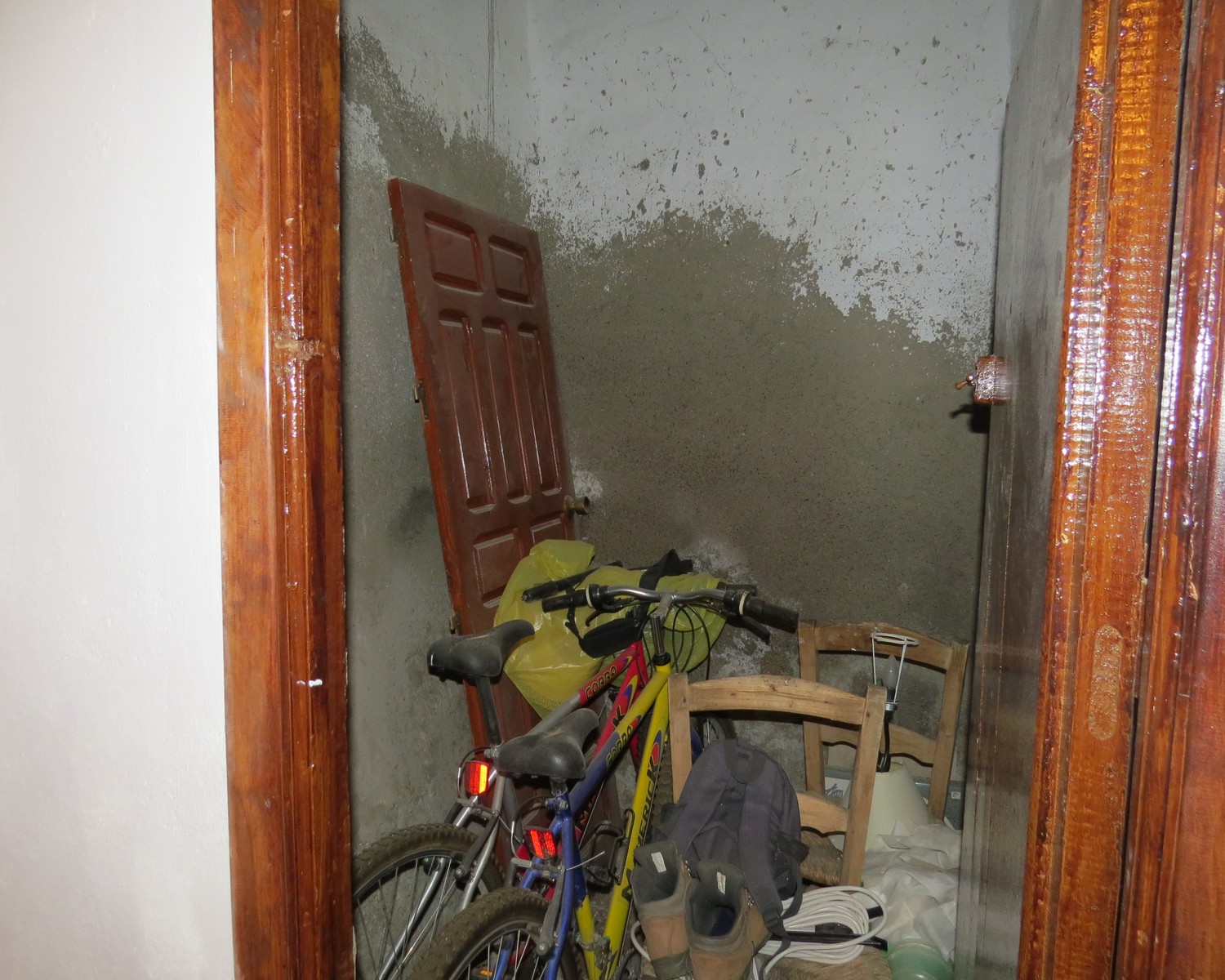The main entrance, at ground floor level, leads in to a reception hall with stairs to the first floor. To the left is a utility room with washing machine and a gas water boiler. Next is the, fully tiled, family bathroom having a bathtub with shower over, wc and wash basin. Also on this floor is a single bedroom and a double bedroom with a storeroom off. This gives scope to add an ensuite or a walk in wardrobe.