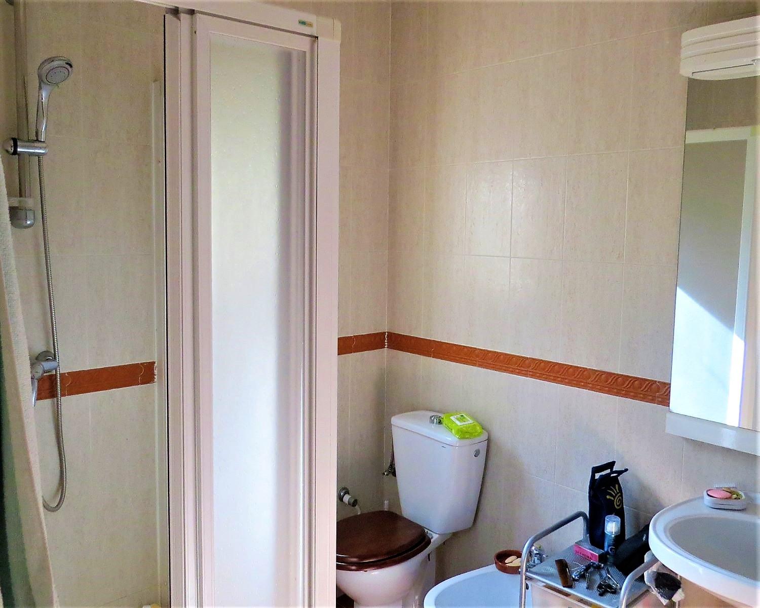 On entering, a small hall leads to a living room, through which there is a shower room with wc and access to a large double bedroom. This bedroom has steps to a seating area, an alcove that could be used as a wardrobe and a door leading to a terrace and the garden.
